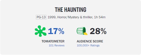 | 더 헌팅 The Haunting, 1999 개봉 1999.09.18 장르 미스터리/스릴러/공포 국가 미국 등급 12세이상관람가 러닝타임 125분 |